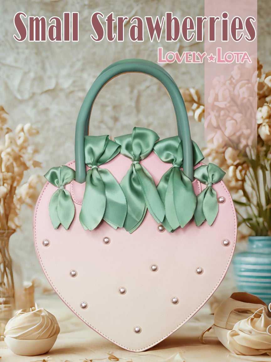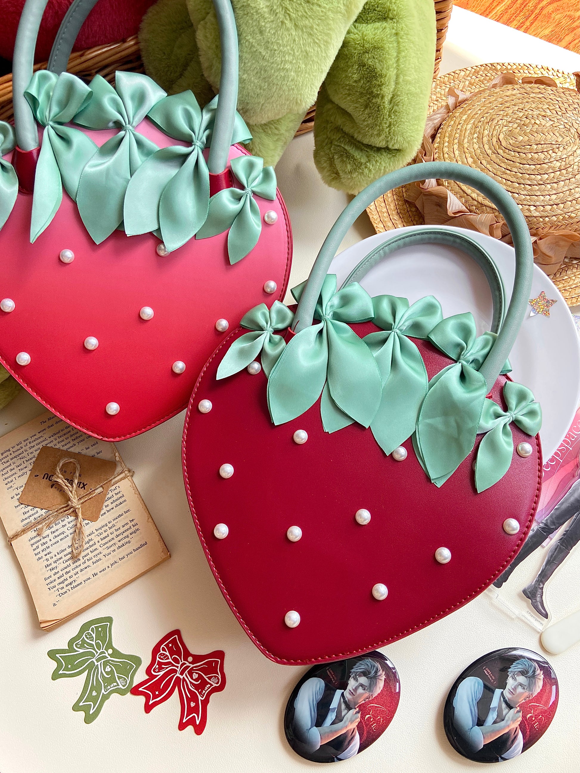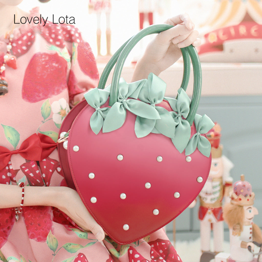 【IN STOCK】LovelyLota Small Strawberry Pearl Red Bow Tote Crossbody Lolita Bag