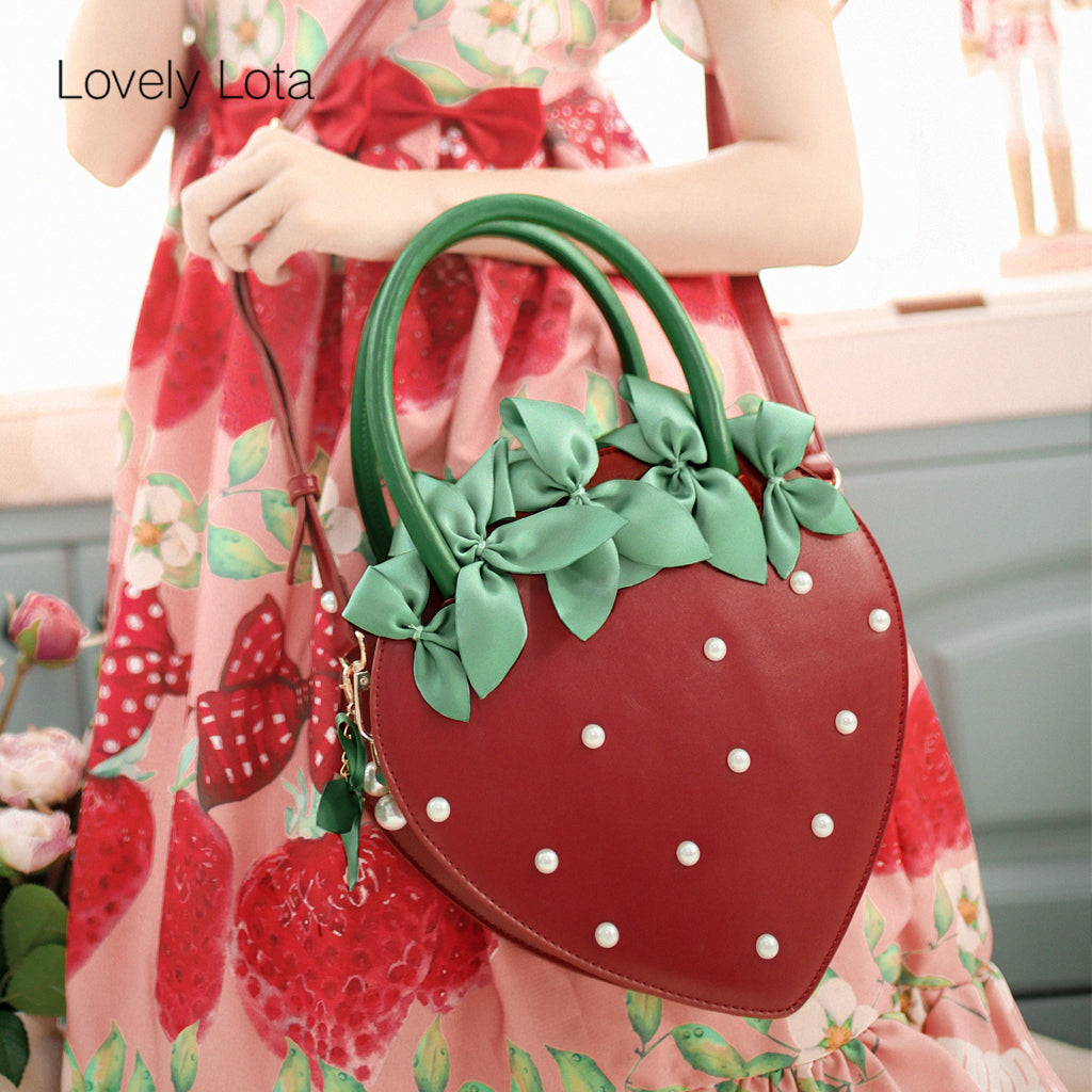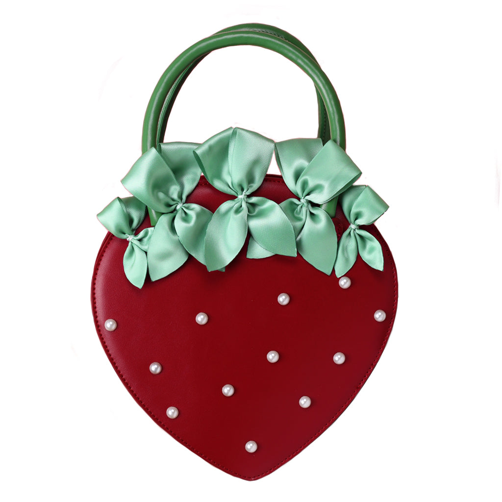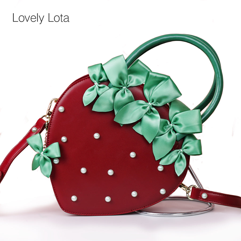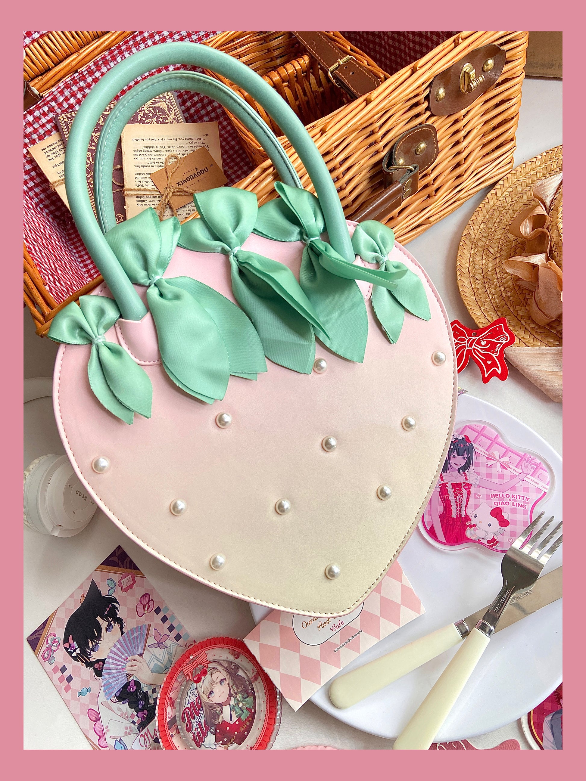 【IN STOCK】LovelyLota Small Strawberry Pearl Red Bow Tote Crossbody Lolita Bag
